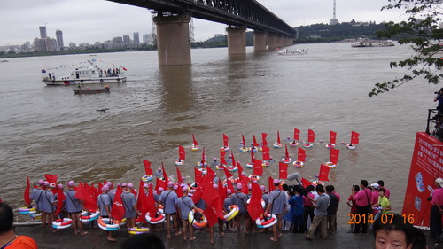 对于武汉渡江的“国际化”,段世杰尤其兴奋,“早上的竞渡比赛中,一位德国选手获得了第二名,当时坐在指挥船上的德国队代表非常高兴;公开水域游泳比赛本身也是奥运会正式比赛项目,这次有不少来自瑞典、日本的选手,所以说,横渡长江也是展示武汉很好的国际平台。”段世杰认为,7·16横渡长江活动是将传统文化与时代精神的完美结合,“毛主席在1966年畅游长江的时候已是73岁高龄,显示出他对大自然的热爱。我看到今天参加渡江的群众中有年轻人、也有年纪很大的老人,敢于在长江中流击水本身就是一种气魄,是对意志品质的综合提升”。