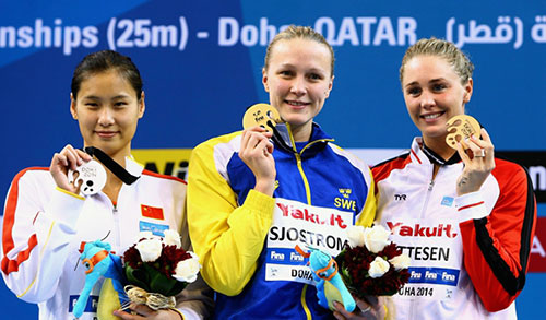 随着巴西队在最后一个比赛日席卷四金,为期5天的国际泳联世界短池游泳锦标赛北京时间8日凌晨在多哈完美收官。“黑马”巴西队以7金1银2铜的成绩排在奖牌榜首位。而更令人叹为观止的是,本届比赛45个短池项目总共有23项世界纪录作古,远远超过了2008年曼彻斯特世锦赛的17项,堪称世界游泳比赛“去鲨鱼皮”之后最精彩的一届短池赛事。