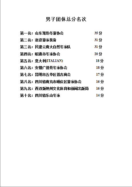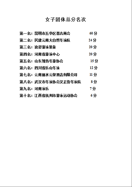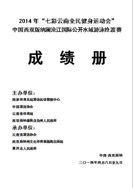 2014年“七彩云南全民健身运动会”中国西双版纳澜沧江国际公开水域游泳抢渡赛成绩册