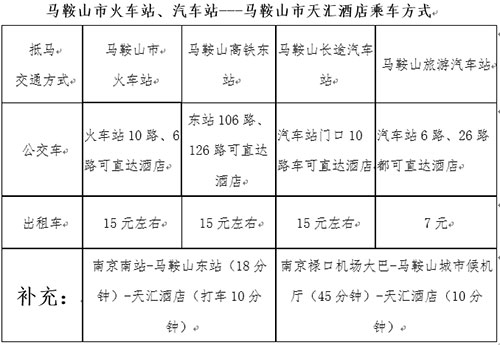 (一) 9月10日10:00-20:00准时到马鞍山市天汇酒店报到(雨山东路865号),20:00后到店的参会人员可和会务组房间联系(房号由酒店前台提供)